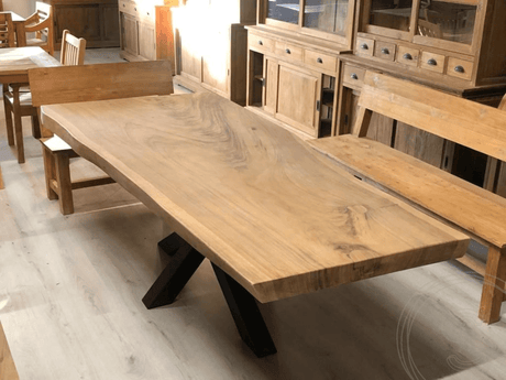 Um eine hohe Qualität zu gewährleisten, werden alle Baumstämme sorgfältig ausgewählt und danach in einer Trockenkammer über einen längeren Zeitraum getrocknet. Dies ist bei der Dicke der Stämme dringend notwendig. Dennoch ist es nicht auszuschließen, dass sich nach dem Trocknen kleine Risse in der Tischplatte oder an den Tischbeinen bilden. Diese Charaktereigenschaft ist keine Qualitätseinschränkung, sondern verleiht dem Tisch eine besondere Ausstrahlung. Kleine Risse spiegelt die Geschichte und das Leben des Baumes wieder, genauso wie man es von Balken in Fachwerkhäusern kennt. Für den modernen Wohnstil empfehlen wir Tische mit geradlinigem Design wie den Klostertisch aus Teakholz.