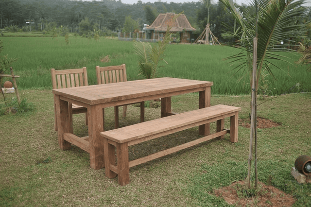 Teakholz ist pflegeleicht. Regelmäßiges Reinigen mit einem feuchten Tuch und einer milden oder grünen Seifenlösung hält das Holz in gutem Zustand. Bei Teakholz-Gartentischen empfehlen wir mindestens 1-2 Mal im Jahr eine gründliche Reinigung, um Ablagerungen wie Algen oder Moos vorzubeugen. Bei Tischen mit Schraubbeinen jährlich prüfen, ob alles fest sitzt.