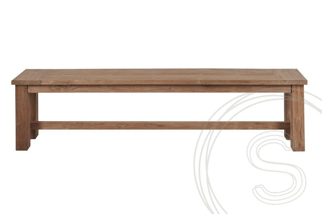 Wie alle Teakholzmöbel für den Außenbereich ist auch die Gartenbank mit einer Ablaufrinne in der Sitzfläche ausgestattet. Regenwasser kann sich dank dieser Konstruktion nicht auf der Oberfläche stauen, was oft eine unschöne Fleckenbildung zur Folge hat. Die Gartenbank aus massivem Teakholz ist ein schnörkelloses Möbelstück für den Außenbereich. Bewusst wurde auf Schnitzereien oder Verzierungen verzichtet, um den rustikalen Charakter der Bank zu erhalten.